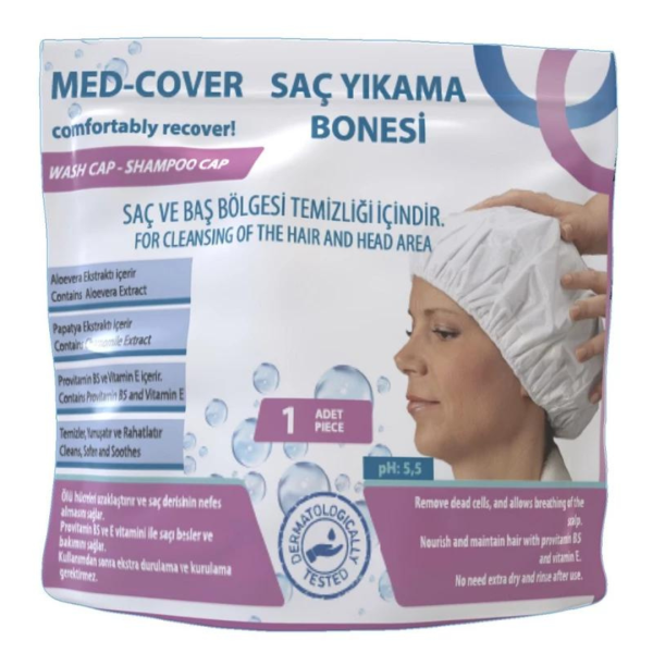 کلاه شستشوی سر برند MED-COVER محصولی نوین از کشور ترکیه است. این کلاه با رعایت تمامی استانداردها و اصول پزشکی و بهداشتی و بدون ایجاد حساسیت برای مصارف پزشکی، زندگی روزمره و حتی در دل طبیعت بسیار کاربردی میباشد. ویژگی اصلی که باعث شده تا این محصول از نمونههای مشابه کاملا متمایز شود، فرمولاسیون این شامپو است. فرمولاسیون این شامپو بر اساس آب و لایه داخلی آن به ۱۴۰ میل محلول مخصوص آغشته است. ترکیب همزمان آب و این محلول خاص باعث شده تا این کلاه خشک نباشد. بعد از استفاده حس خوشایندی کاملا شبیه به استحمام را به مصرف کننده منتقل میکند.